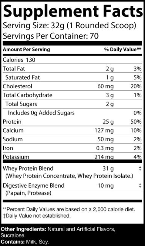You get more servings per bottle and more whey in every scoop! Our whey protein contains an incredible 75% protein, while most other brands of protein contain less than 70%. Our whey protein is providing the highest biological value of any protein source. This makes it ideal for building lean muscle. PRO25 contains both Papain and Protease for protein absorption, as well as Whey Isolate and BCAAs (Leucine, Isoleucine, and Valine) for protein synthesis. PRO25 is absorbed immediately, flooding your muscles with key amino acids. This makes PRO25 the perfect protein to take immediately after your workout, when your muscles crave protein the most.