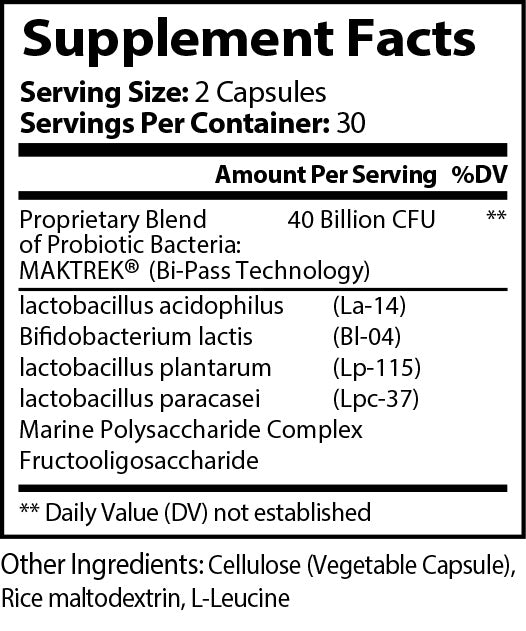 Probiotics 40 Billion is a blend of 4 strains (40 billion CFU/g) of Probiotic Bacteria. Our Probiotic supplement is designed to provide a high potency and balance of beneficial bacteria. By taking this product on a regular basis Probiotic-40 can help assist in maintaining healthy intestinal flora. This supplement also contains FOS to help with acidophilus and bifidus.
